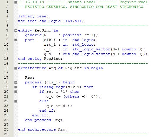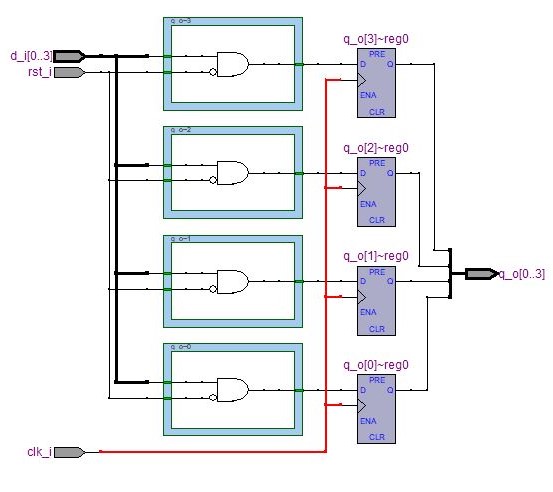 En este video te muestro la descripción VHDL de un registro PIPO (parallel input, parallel output), sincrónico, genérico. Es muy sencillo, consta de un único proceso explícito que se dispara con la señal de reloj. El reset es sincrónico. Luego de compilar, vemos los warnings. Te muestro también el circuito esquemático generado por “Technology Map Viewer” de “Tool” y lo analizo.